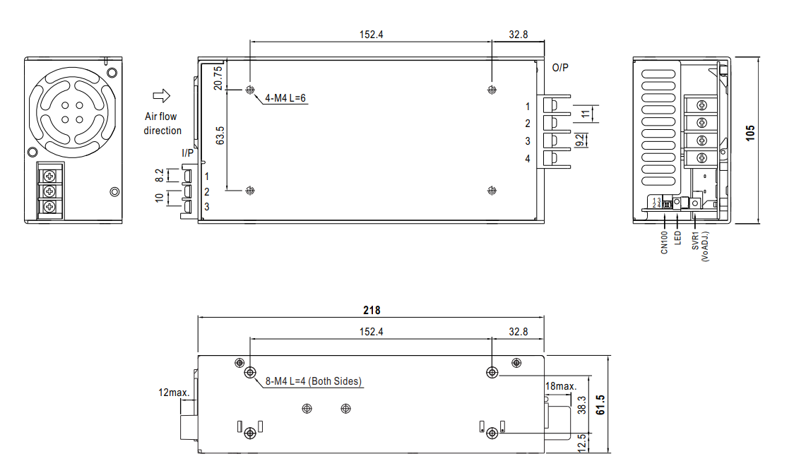 - Protections: short circuit, overload, overvoltage, overtemperature
